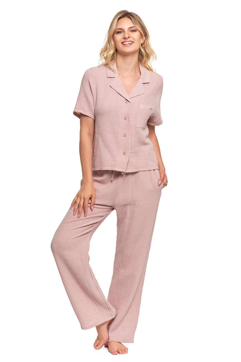 Sesto Senso Herren Pyjama Set – Langarm, Durchgeknöpft, 100% Baumwolle, Komfortabel mit Kragen und Taschen, Elastischer Bund, Ganzjährig, Farbe: Grau, Ideal für Männer, Made in Poland
