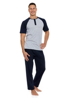 Sesto Senso Herren Baumwoll Pyjama Set – Kurze Ärmel und Hose, Atmungsaktiv und Bequem, Knopfleiste, Taschen, Perfekt für Zuhause und Schlafen, Mehrfarbig, Modell 2182/10, Hergestellt in Polen