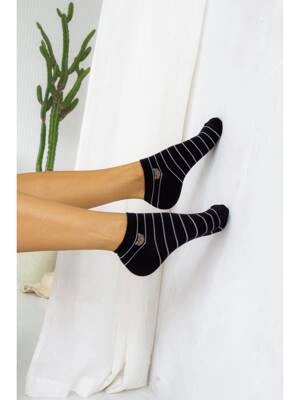 Damensocken Frottee Serie Gestreift Schwarz/Beige