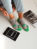 Damen Sneaker Socken Serie Gestreift Grün Weiß