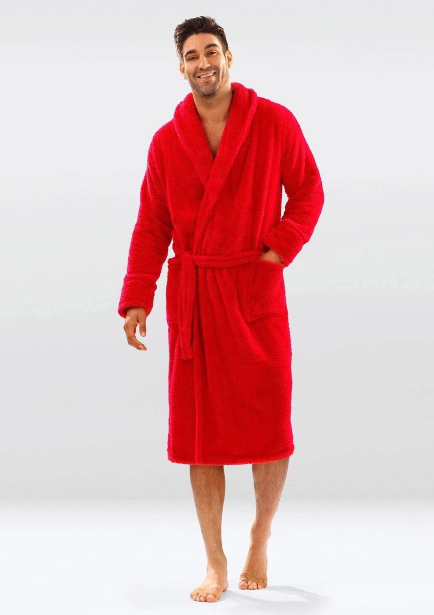 Der Dkaren Herrenmorgenmantel aus der Serie PODOMKA 130 PLUS SIZE ist die perfekte Wahl für Männer, die Komfort und Stil schätzen. In einem ansprechenden roten Farbton gefertigt, eignet sich dieser Bademantel ideal für entspannende Stunden zu Hause.