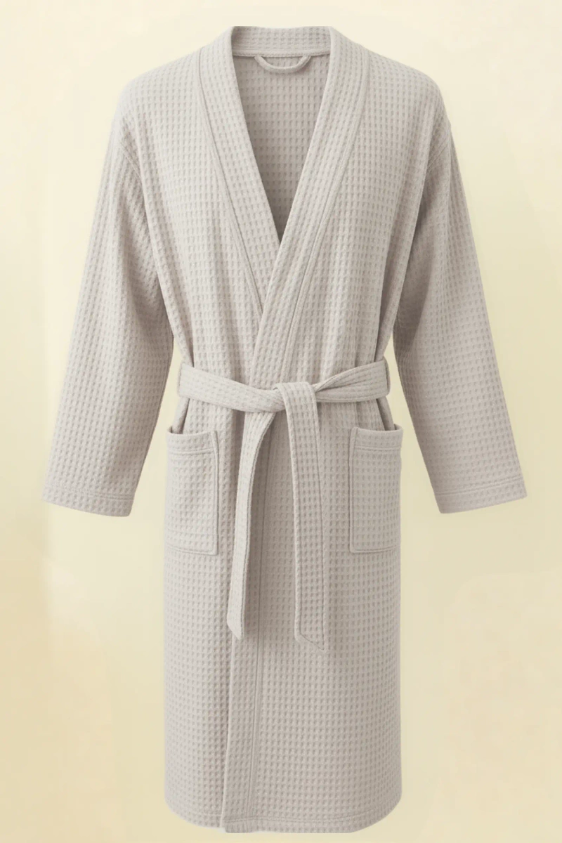 Hergestellt aus 100% natürlicher Waffelbaumwolle bietet der WAFEL Bademantel eine hervorragende Luftzirkulation und umhüllt sanft den Körper, sodass Sie sich das ganze Jahr über frisch und leicht fühlen können. Mit einem Gewicht von 280 g/m² ist er für jede Jahreszeit ideal geeignet. Die einzigartige Waffelstruktur verleiht nicht nur Eleganz, sondern sorgt auch für schnelles Trocknen.