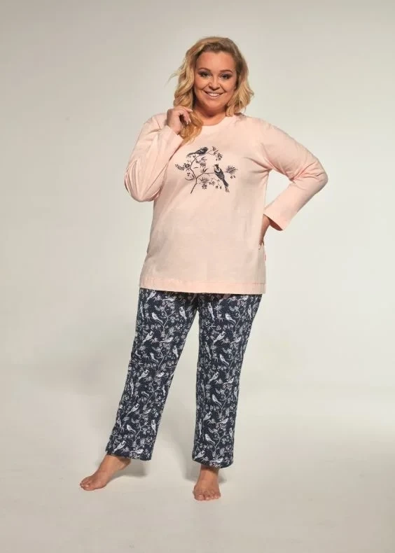Das Produkt, Damen-Baumwollpyjama 768/363 Birdie, ist eine bequeme und stilvolle Nachtwäsche, perfekt für kältere Nächte. Der Pyjama besteht aus zwei Teilen: einem Hemd und einer langen Hose.