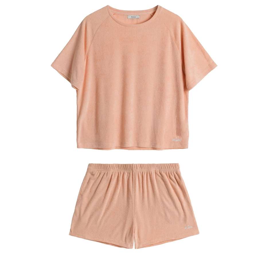 Das Set besteht aus einem locker geschnittenen T-Shirt mit rundem Halsausschnitt und kurzen Ärmeln sowie bequemen Shorts. Diese Kombination sorgt für optimalen Tragekomfort im Alltag – sei es als Nachtwäsche oder legere Homewear.