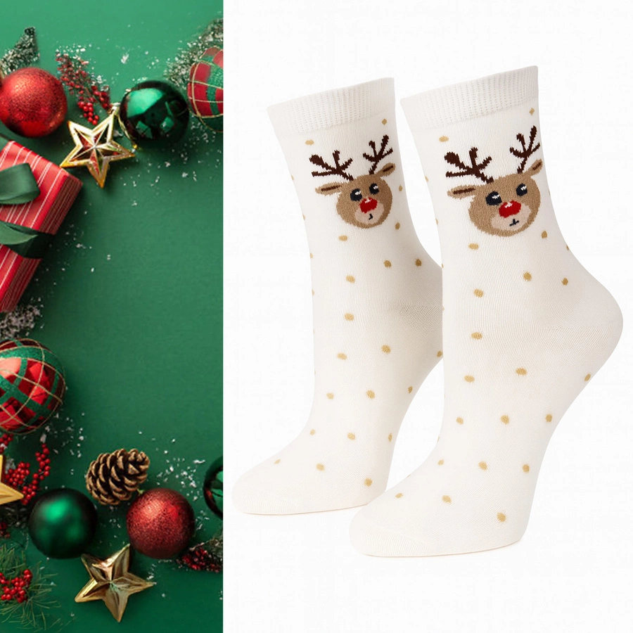 Damensocken Serie 1283 Rentiermuster Ecru