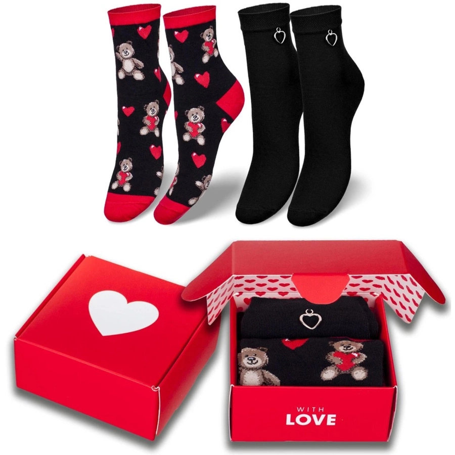 Damensocken Valentinskollektion Herzmuster Schwarz
