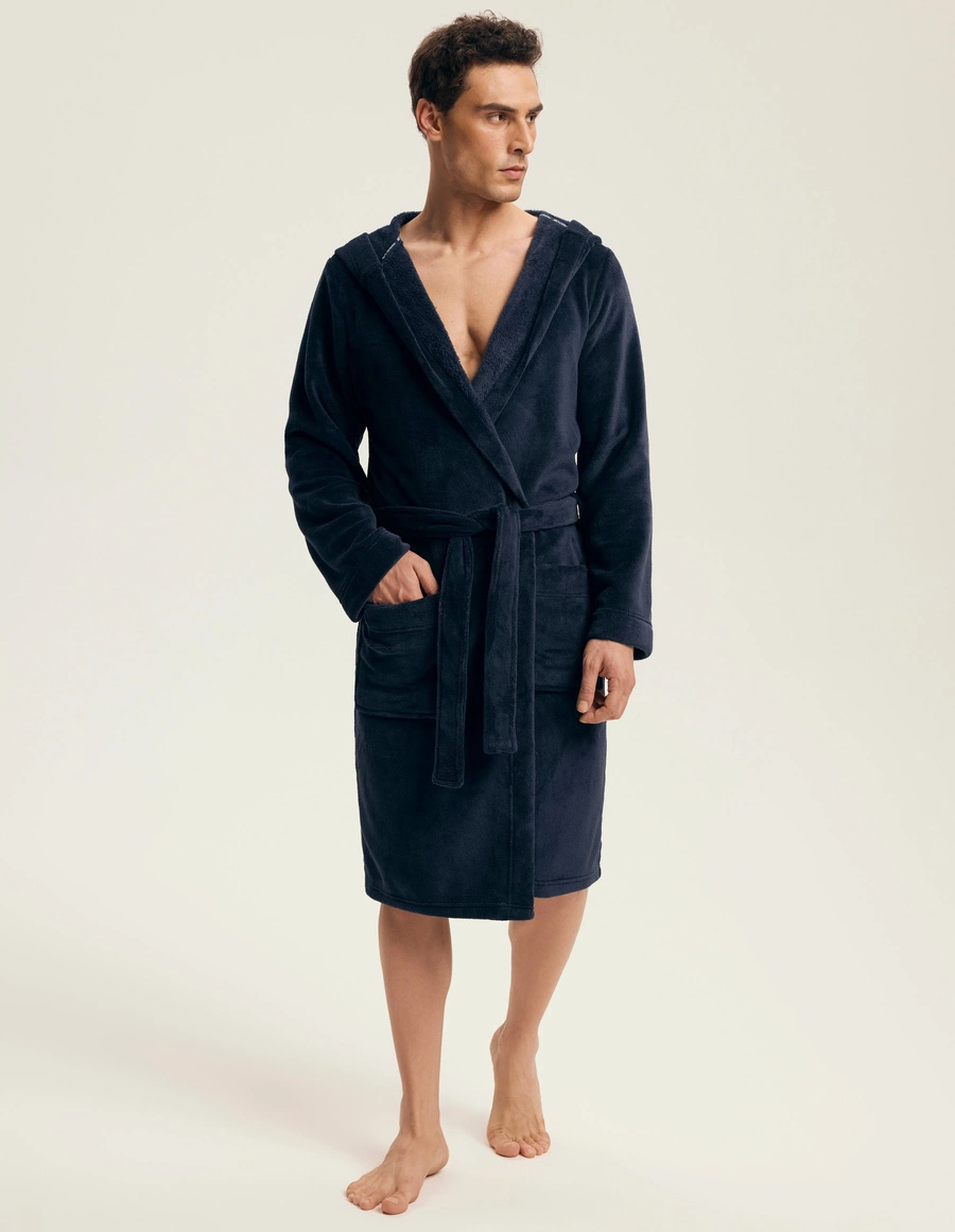 Der elegante Farbton dunkelblau verleiht dem Bademantel einen klassischen Charakter. Das Hauptmerkmal dieses Bademantels ist das verwendete Material: 100% Polyester, welches Wärme und Bequemlichkeit garantiert. Die Leichtigkeit und Weichheit des Stoffes machen ihn ideal für den täglichen Gebrauch.