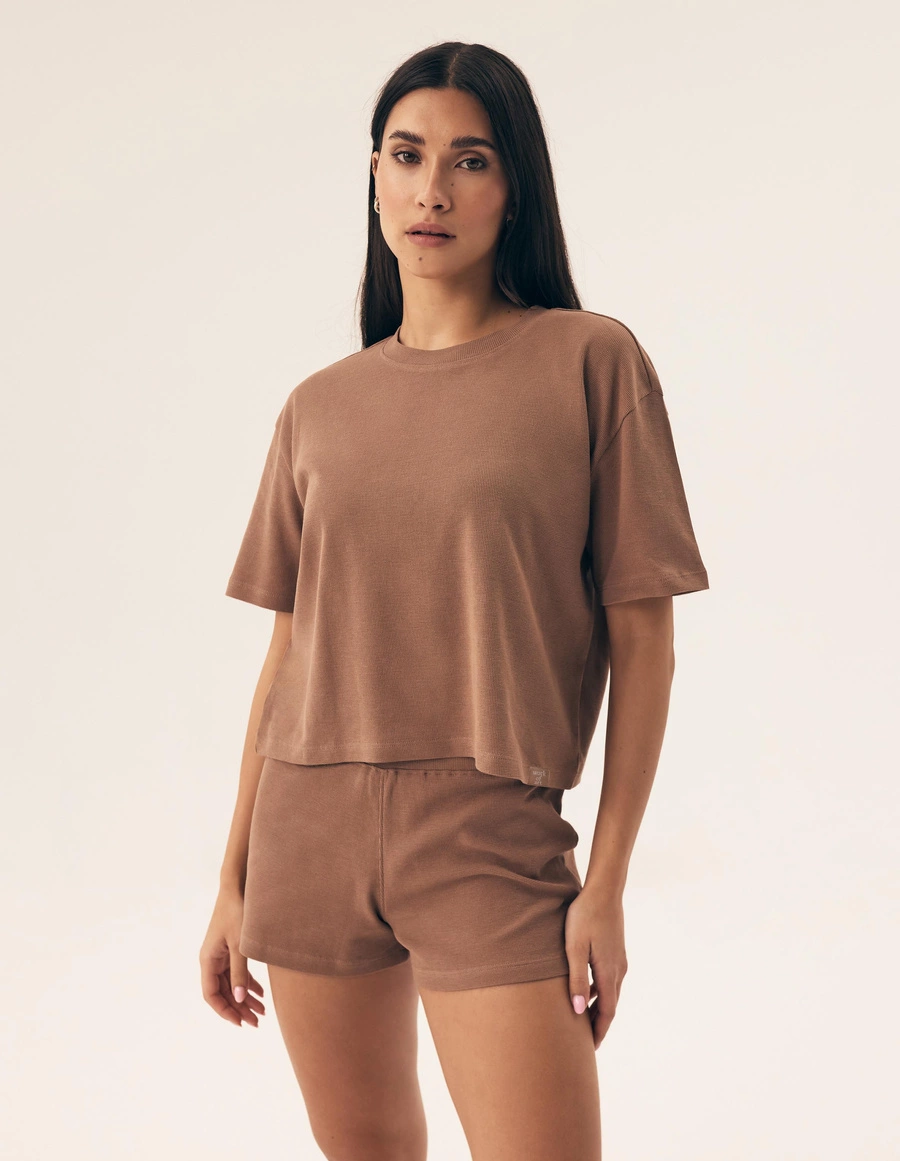 Das stilvolle und subtile Design des Nilsa Sets in Kaffefarbe unterstreicht seine Eleganz. Sorgfältig verarbeitete Nähte und die Liebe zum Detail spiegeln die hohe Qualität der Ausführung wider. Der moderne Pyjamastil sorgt für Bewegungsfreiheit und sieht gleichzeitig schick aus.
