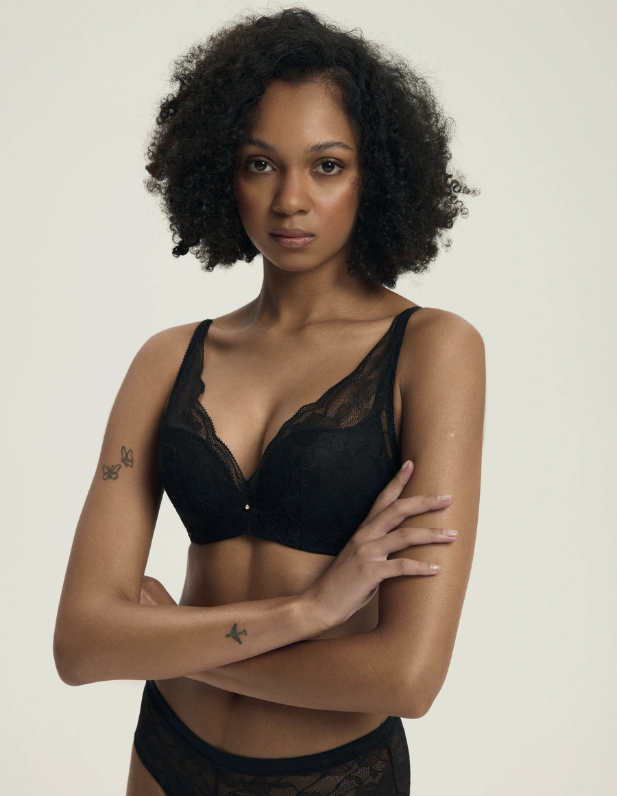 - Schwarzer Fabbie Push-up-BH mit Spitze. Brustvergrößernd und äußerst elegant, perfekt für den Alltag.