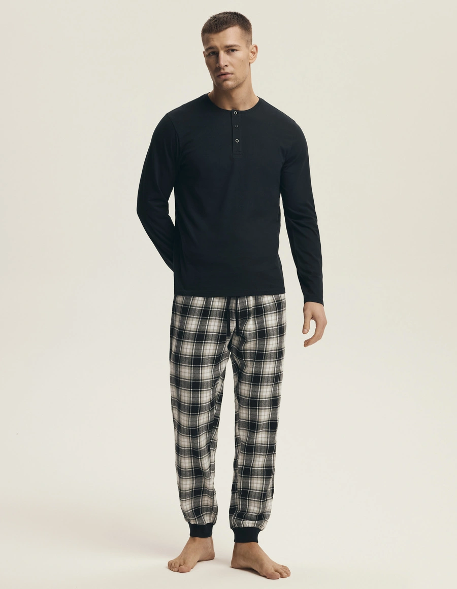 Der Herrenpyjama Henderson Noir ist die ideale Wahl für alle, die Komfort und Stil bei der Nachtruhe schätzen.