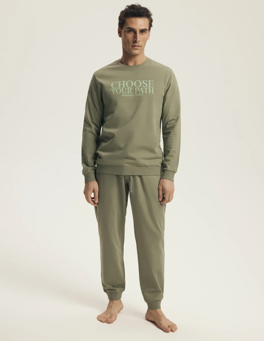 Die Pyjama eignet sich sowohl als tägliche Heimkleidung als auch als bequeme Schlafbekleidung. Dank ihrer Funktionalität wird sie zu einem unverzichtbaren Bestandteil der Garderobe jedes Mannes. Das stilvolle Design in Military-Farbe hebt den modischen Charakter dieser Pyjama hervor.