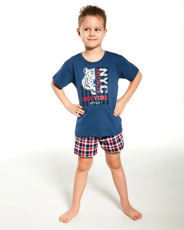 Zweiteiliger Schlafanzug für Jungen mit kurzen Ärmeln und kurzen Hosen. Jeansfarbene Pyjamabluse mit jugendlichem Aufdruck, der das das Set ist ideal für größere Jungen. Die Hose ist aus gestricktem in modischem Karomuster. Dieses Set ist ideal für Frühling und Sommer. Pyjamas aus aus hochwertiger Baumwolle, der sich sich angenehm anfühlt, sanft zur Haut ist und lässt sie frei atmen. Locker sitzender Pyjama für volle Bewegungsfreiheit. Satz in Plastik eingewickelt.