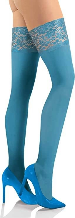 Sesto Senso Damen Pończochy Samonośne Nicole – Elegante 50 DEN Mikrofaser Strümpfe mit Silikonspitze, Mattem Finish, Komfortabel und Haltbar, Petrol, Größe 1/2 oder 3/4 – Perfekt für Verschiedene Anlässe