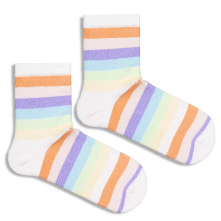 Die Socken JOY 184 bieten Kindern Komfort und einen verspielten Look. Mit ihrem regenbogenbunten Design bringen sie Freude in jede Alltagssituation.