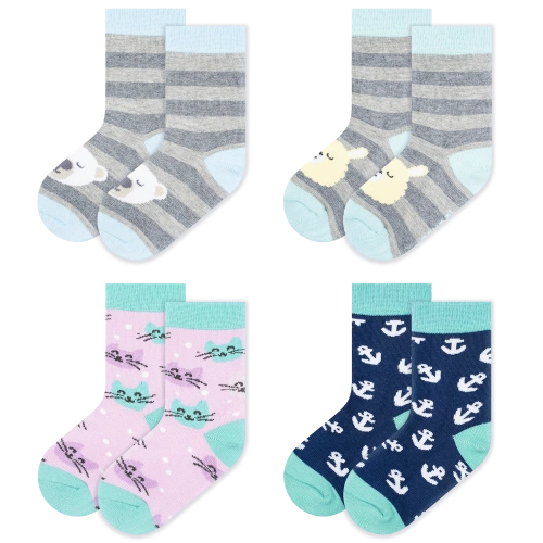 Die Socken passen sich ideal der Kinderfußform an, ohne zu drücken oder zu verrutschen. Sie bieten sicheren Halt, auch bei viel Bewegung, und sind somit der ideale Begleiter für aktive Kinder. Der elastische Abschluss sorgt dafür, dass die Socken an ihrem Platz bleiben, ohne einzuschnüren.