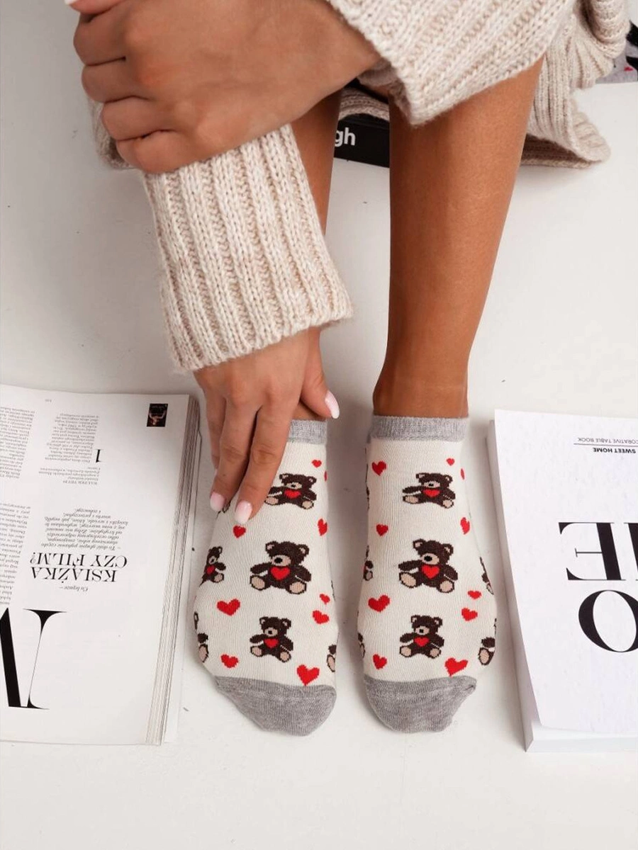 Teddybären und Herzchen Füße, Farbe Ecru, Größe 37-41