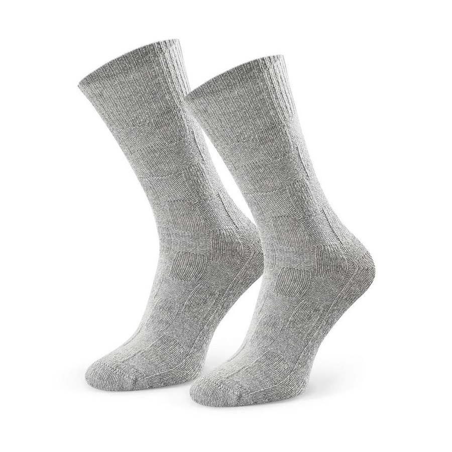 Diese Damen-Wollsocken kommen in modischer Optik mit dezentem Karomuster, das mühelos mit unterschiedlichen Outfits kombinierbar ist. Die klassische Farbauswahl in Hellbeige bringt dezente Eleganz in jedes Schuhwerk und lässt sich sowohl mit lässiger wie auch formeller Kleidung harmonisch kombinieren.