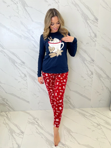 Damen Schlafanzug Natalie Dunkelblau mit Plätzchen-Muster