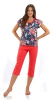 Sesto Senso Damen Pyjama Set – Weiche Baumwolle, Kurzarm, Blumendesign, Malinfarbene 3/4 Hose, Bequemer Schlafanzug für Frauen, Atmungsaktiv, Komfortabel, Eleganter Stil