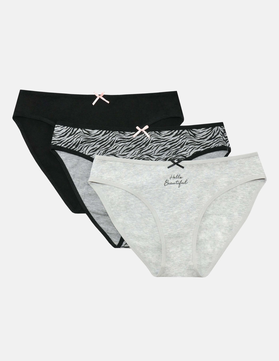 Women's panties with a timeless cut of the panties type, made of soft, airy cotton, are an excellent choice for female admirers of comfort. MI-MI panties are available in a dozen color versions of sets packaged in economical three-packs. Flat, comfortable seams are almost invisible under everyday clothes.