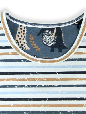- Składa się z koszulki - T-shirt w kolorze granatowym oraz spodenek w kolorze granatowym w żaglówki idealnie dobranych do kolorystyki koszulki.