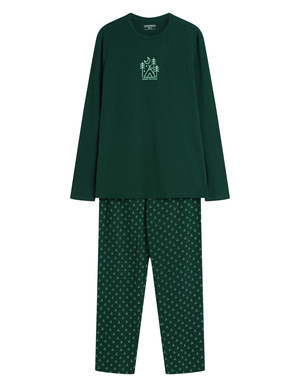 The long-sleeved shirt with a round neckline sits perfectly on the body, while the long-legged pants with a tie at the waist allow for a perfect fit. The pajamas combine simplicity, elegance and functionality - perfect for cooler nights.