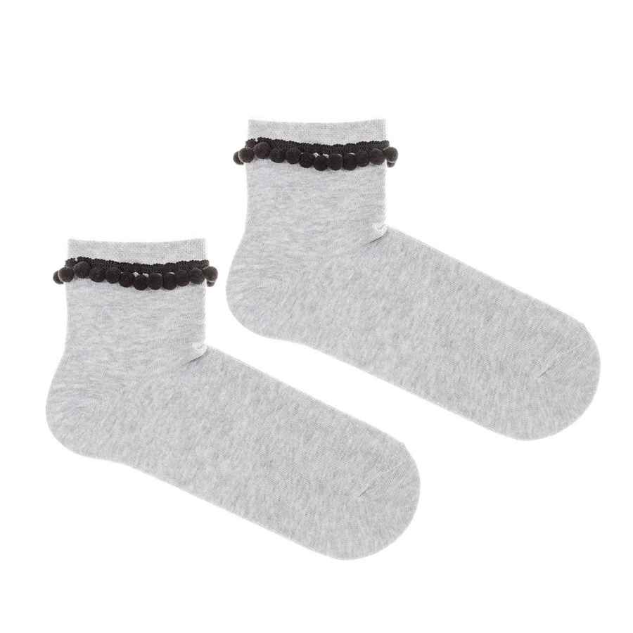 Bawełniane stopki z pomponami wokół kostki. Wszystkie oferowane produkty wykonane są z dbałością o wysoką jakość.