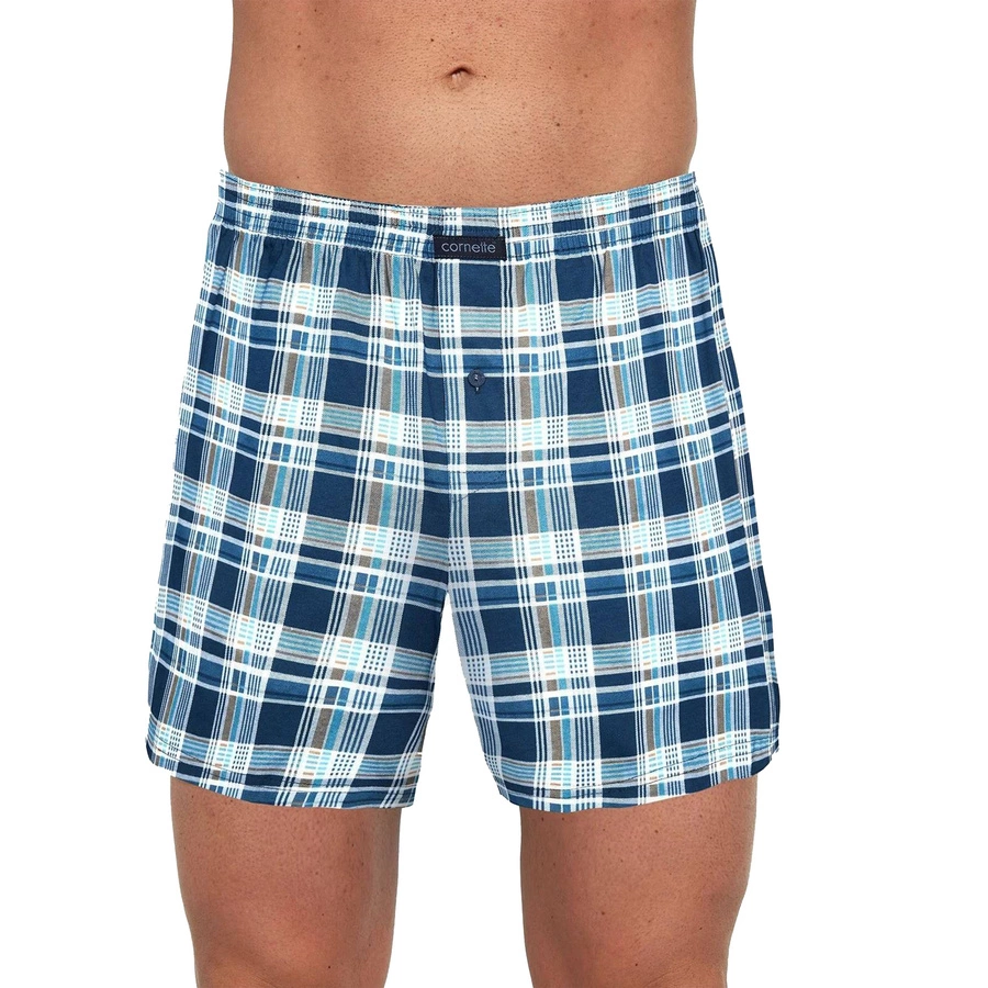 Propozycja dla miłośników tradycyjnych, luźniejszych bokserek dających olbrzymi komfort użytkowania. Pełną swobodę ruchów zapewnia luźny krój oraz zastosowany materiał w modne, drobne elementy graficzne. Naturalna dzianina jest niezwykle delikatna dla skóry, miła w dotyku, pozwala skórze swobodnie oddychać. Wygodna szeroka guma w pasie jest obszyta miękkim materiałem. Bokserki z rozporkiem są zapinane na guziczek. Bokserki są zapakowane w estetyczne pudełeczko. Luźne bokserki są idealną propozycją dla mężczyzn ceniących sobie komfortową bieliznę.