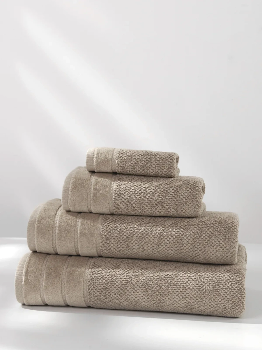 Meet the Loren terry towel in mocca color, made of 100% premium cotton, with an impressive weight of 550 gsm. Its popcorn texture and elegant decorative bordering give it a unique character, while the careful finishing guarantees durability for years to come. This is a product that combines luxury, comfort and timeless elegance.
