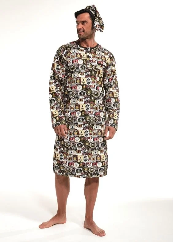 Wygodna koszula nocna dla mężczyzn szukających produktów najwyższej jakości. Koszula męska z długim rękawem i szlafmycą jest wykonana z wysokiej jakości oddychającej bawełny. Materiał jest delikatny dla skóry, miękki i przyjemny w dotyku. Koszula z rozpinanym dekoltem i praktyczną kieszonką. Koszula jest zapakowana w estetyczne pudełeczko. Sprawdzi się także, jako praktyczny prezent.