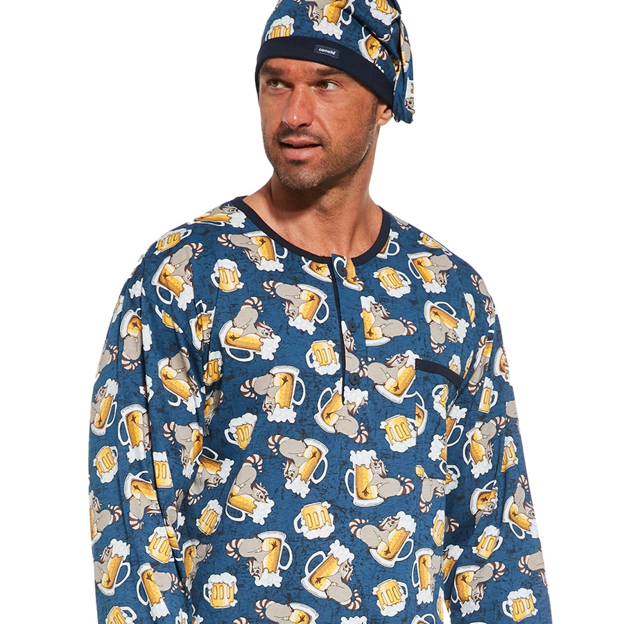 Wygodna koszula nocna dla mężczyzn szukających produktów najwyższej jakości. Koszula męska z długim rękawem i szlafmycą jest wykonana z wysokiej jakości oddychającej bawełny. Materiał jest delikatny dla skóry, miękki i przyjemny w dotyku. Koszula z rozpinanym dekoltem i praktyczną kieszonką. Koszula jest zapakowana w estetyczne pudełeczko. Sprawdzi się także, jako praktyczny prezent.