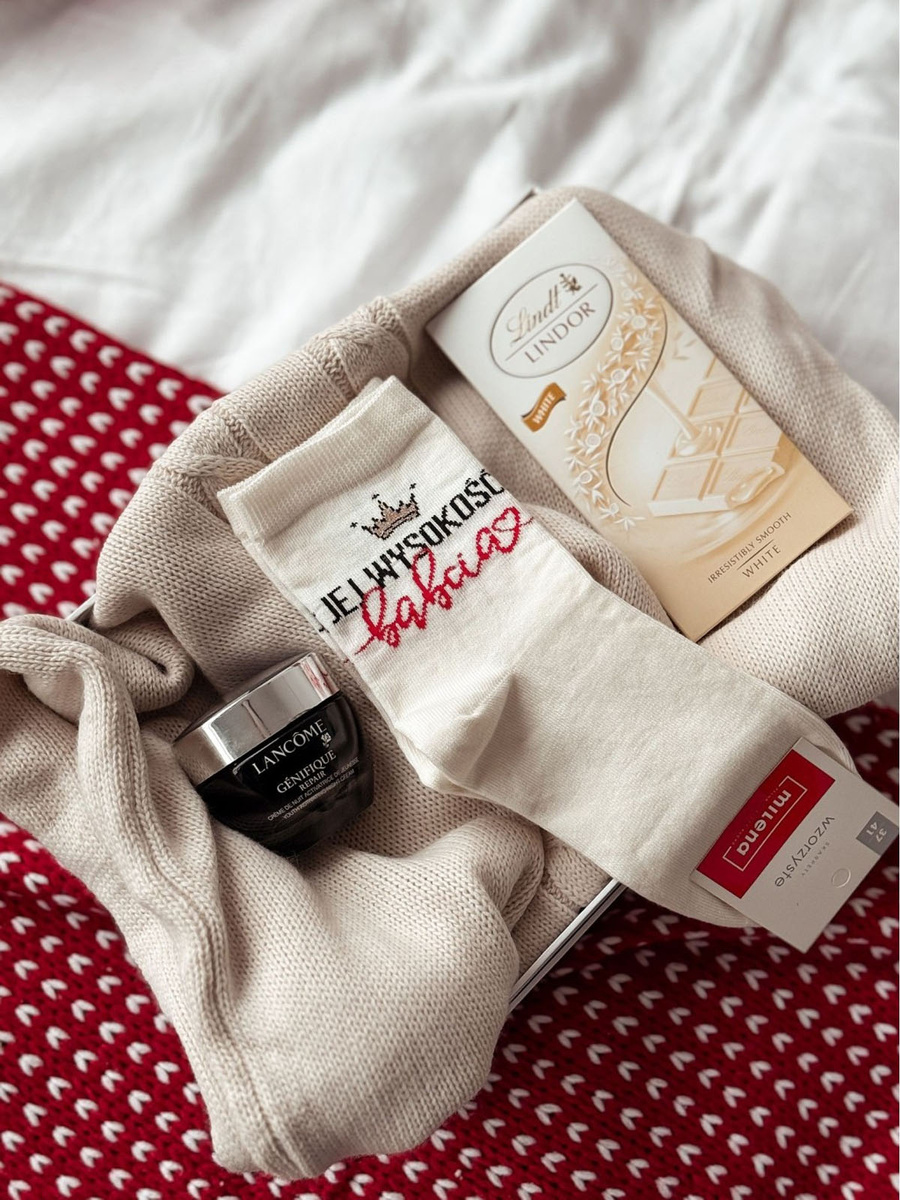 Bawełniane skarpetki 'Super Babcia' to idealny prezent na Dzień Babci. Są wykonane z delikatnej, ale trwałej wysokogatunkowej bawełny, zapewniając maksymalny komfort noszenia. Charakterystyczny design tych skarpet cechuje się wesołym i kolorowym wzorem, przedstawiającym symbol superbohaterki z napisem 'Super Babcia', co jest uznaniem dla niezwykłych mocy, jakie posiadają nasze babcie - od nieograniczonej miłości po niezwykłą mądrość. Te skarpetki to nie tylko praktyczny, ale również serdeczny upominek, który wyraża naszą wdzięczność i miłość. Dzięki nim każda babcia poczuje się doceniona i wyjątkowa, przypominając o niezastąpionej roli, jaką pełni w życiu swojej rodziny.