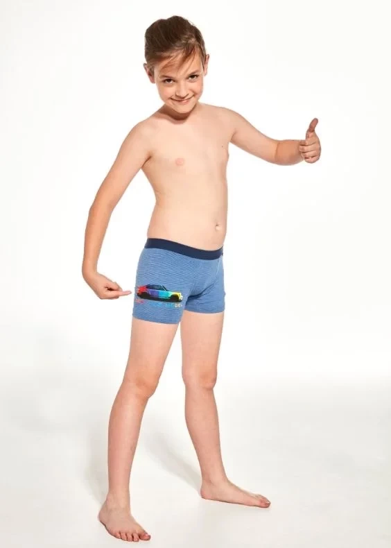 Wygodne i komfortowe bokserki chłopięce w modnym kolorze ozdobione genialnie skoloryzowanym nadrukiem. Płasko łączona guma w kontrastującym kolorze obszyta bawełną, bezuciskowe wykończenie nogawek. Bokserki chłopięce to idealna, letnia propozycja dla chłopców. Bokserki doskonale przylegają do ciała. Produkt polski. Bokserki posaidają Certyfikat Bezpieczny dla Dziecka.