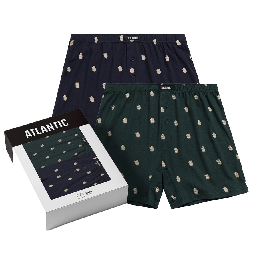 Atlantic, un brand recunoscut pentru calitatea bumbacului și confortul oferit, propune un set practic de boxeri bărbătești lejeri din seria 2MBH-003. Acest set include două perechi în culori clasice și masculine: albastru marin și smarald, ambele cu imprimeu subtil care adaugă o notă vizuală modernă.