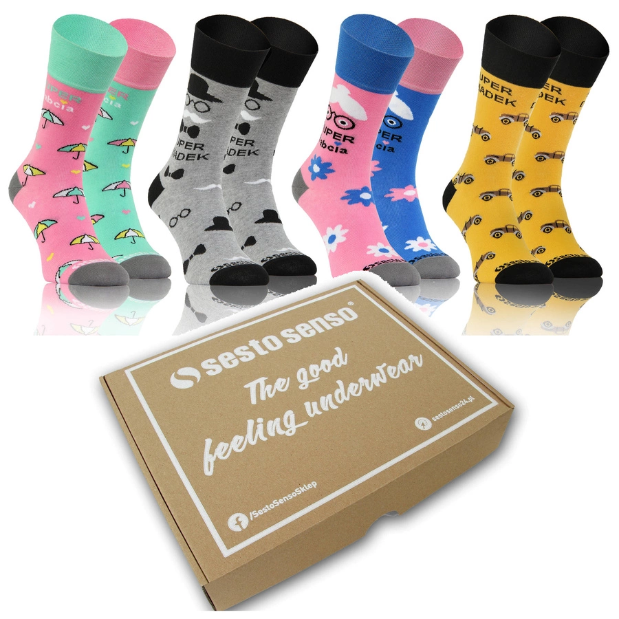 Cutia elegantă în care este ambalat setul de 4 perechi de șosete îl face cadoul perfect pentru cei dragi. Exprimați-vă grija și oferiți-le celor dragi ceva special. Șosetele Sesto Senso nu sunt doar un accesoriu practic, ci și o modalitate de a te exprima pe tine și emoțiile tale.