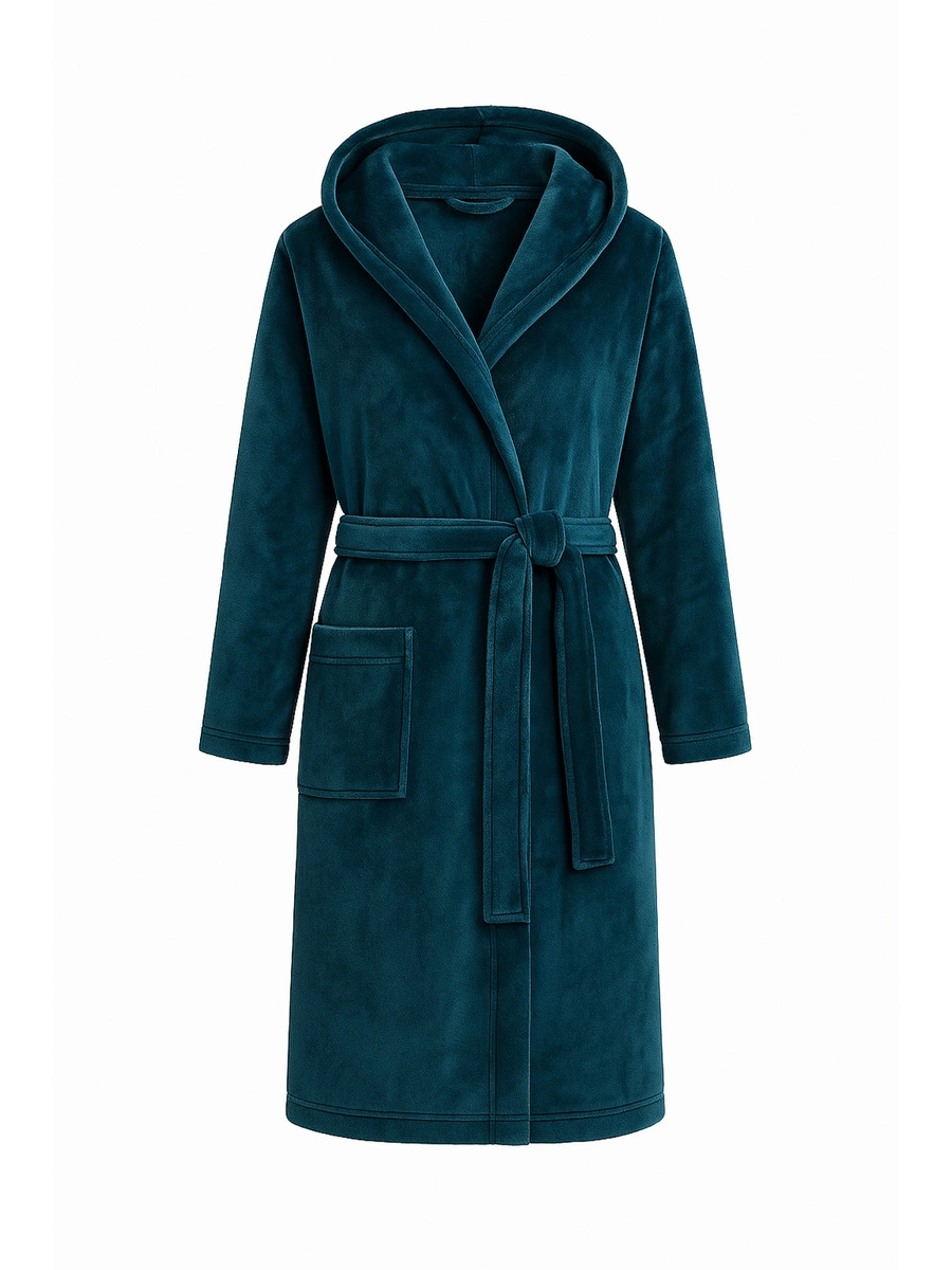 Halatul de baie se distinge prin designul său elegant, care combină stilul modern cu soluții practice. Mânecile lungi și lungimea până la genunchi asigură o potrivire confortabilă, în timp ce gluga vă protejează de frig, adăugând la aspectul elegant al halatului. Două buzunare practice și o cravată la talie sunt caracteristici suplimentare care se adaugă funcționalității acestui produs.