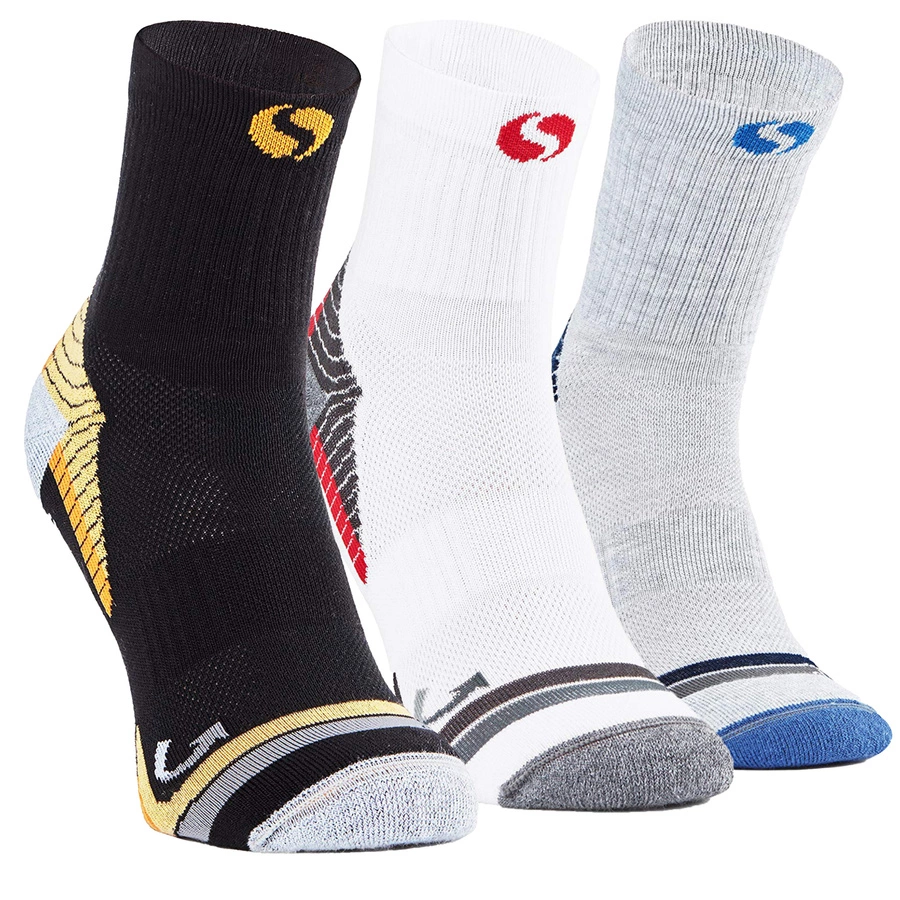 Skarpety sportowe z serii EXTREME SOCKS przeznaczone dla osób jeżdżących na rowerze. Zaprojektowane w sposób zapewniający maksymalną wygodę i komfort użytkowania. Posiadają amortyzujące wzmocnienie w okolicach palców i pięty. Skarpety BIKE mają dodatkowe wzmocnienie w okolocach podbicia a także dodatkowy ściągacz wzmacniający kostkę.