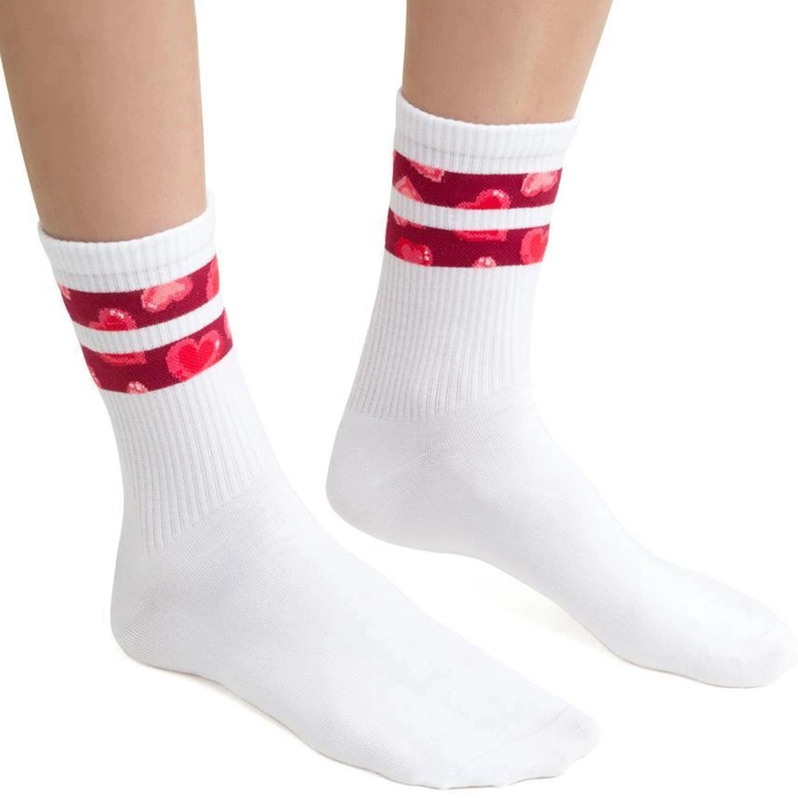 Culoarea albă adaugă o notă de eleganță și rafinament, în timp ce imprimeul cu inimioare transformă aceste șosete într-un articol potrivit pentru ocazii speciale precum Ziua Îndrăgostiților, dar și ca detaliu vesel integrat în ținutele zilnice. Designul este bine echilibrat, astfel încât să ofere un look modern, dar și feminin.