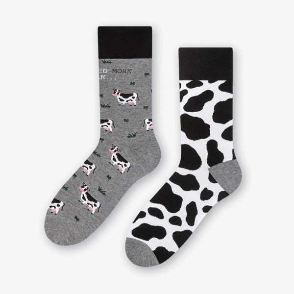 Skąd zatem to pejoratywne zabarwienie uznawane za obraźliwe? No cóż chodzą pogłoski, że wymyśliły je zazdrosne barany z sąsiedniej łąki. Tak czy siak, my lubimy krówki tak bardzo, że mamy własne stadko na naszych skarpetach I NEED MORE MILK... Prawda, że trudno odmówić im uroku i od razu budzą sympatię.
